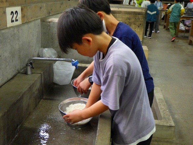 家や家庭科の授業で学んできたことを生かして、コメとぎをしたり、野菜を切ったりしました。