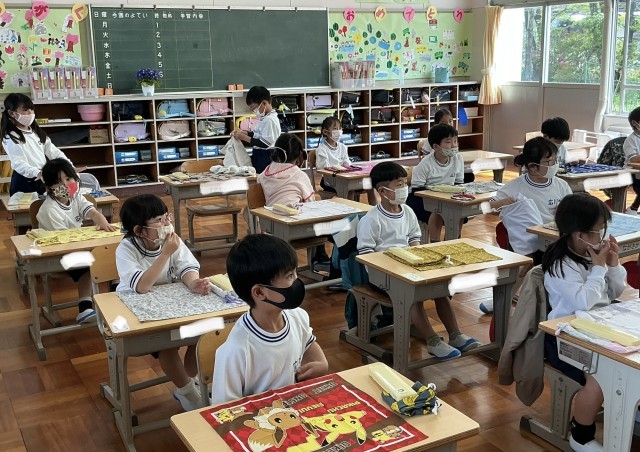例年、この時期はまだまだ学校生活に慣れておらず、とまどうことが多いのですが、今年の1年生の子たち、ササっと準備を自分で行えます。