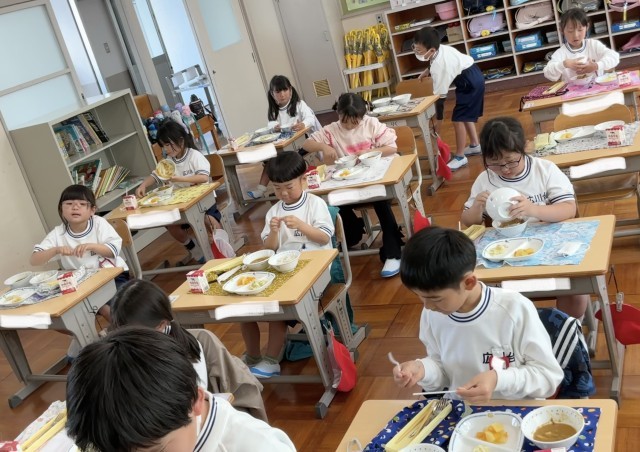 1年2組さんも給食開始です。
