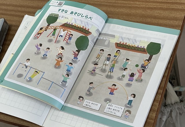 教科書にある絵を参考にしながら、すきなあそびを発表していました。