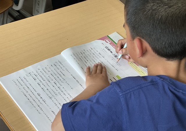 先生から「先生が今から読みます。みんなは鉛筆か指で読んでいるところを追いかけてください」と話がありました。