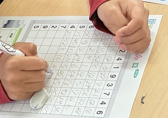 単純な九九ではないので、難しくはないけれど、頭をフル回転させる100マス計算でした。