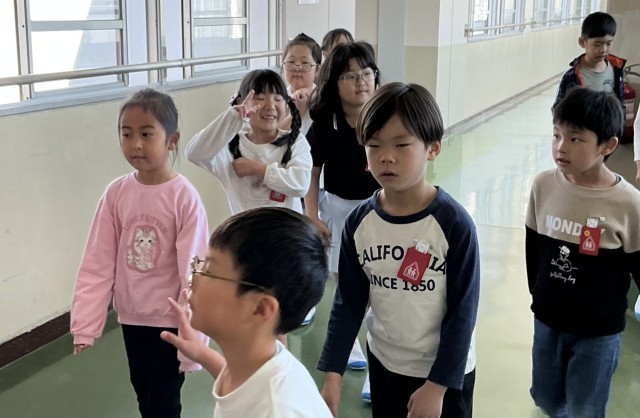 学習用タブレットを構えていたので、ポーズをしてくれたり、手をふってくれたりした子もいましたが、お行儀よく、教室の場所を確認したり、お兄さん、お姉さんの授業を見学したりしていました。