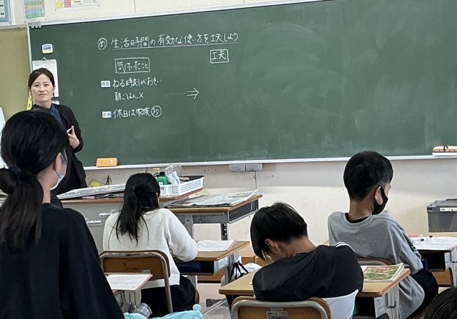 6年2組さん、「生活時間の有効な使い方を工夫しよう」ということで、家庭科の授業を受けていました。