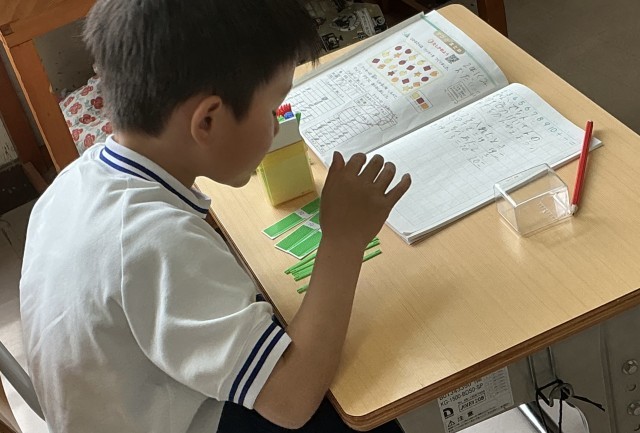 の計算を算数セットを使いながら学びました。