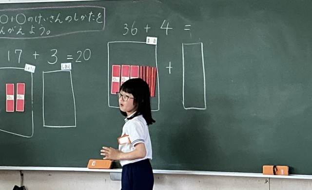 2年1組さん、算数の授業で「2桁+1桁」の計算を学んでいました。