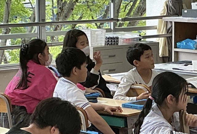 5年1組さんは漢字の勉強を、6年2組さんは椅子の高さの調節をしていました。