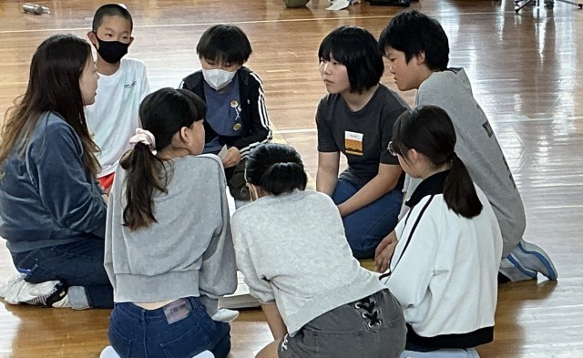 5時間目の終わりぐらいに再び体育館を訪れると、にこやかに、かつ真剣に活動する6年生の姿がありました。