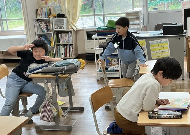 パワーアップタイム前の時間、6組さん、1年生の教室ではゆったりと時間が流れていました。