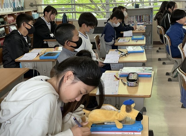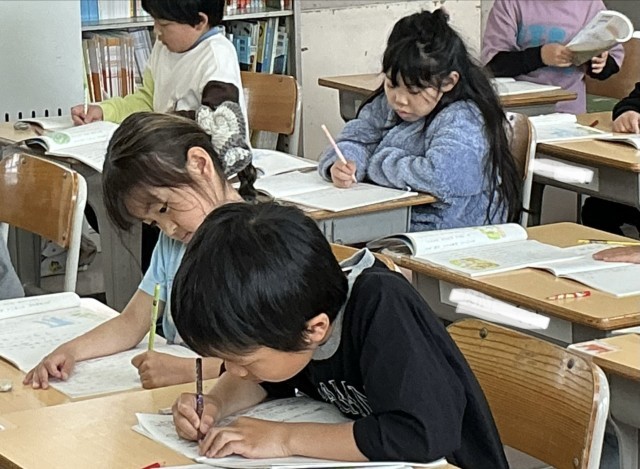 6年2組さん、漢字ドリルで新出漢字の練習中です。