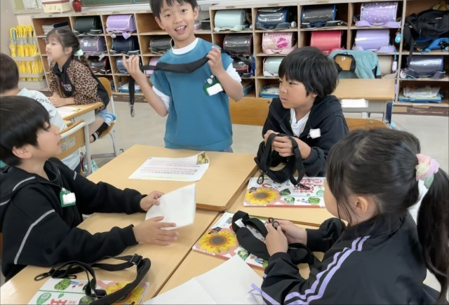 肩ベルトが配られ、どんな感じか、触っている子がいっぱいいました。