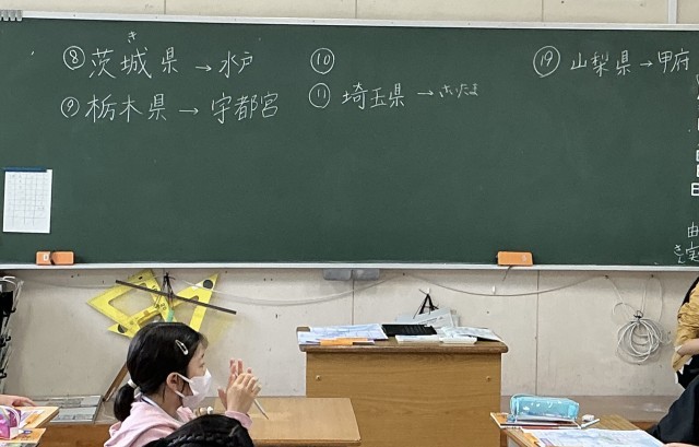 4年2組さん、今日は都道府県、県庁所在地、関東地方の勉強中でした。