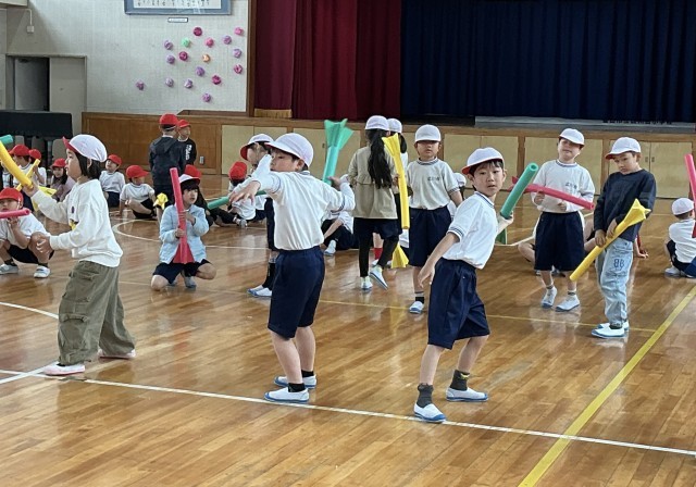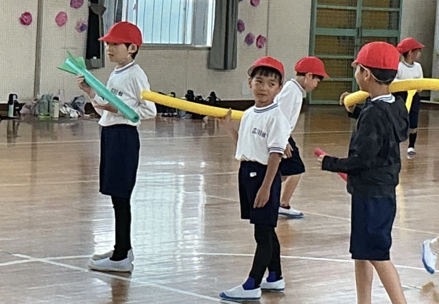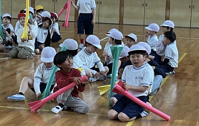 肩ベルトが配られ、どんな感じか、触っている子がいっぱいいました。