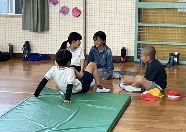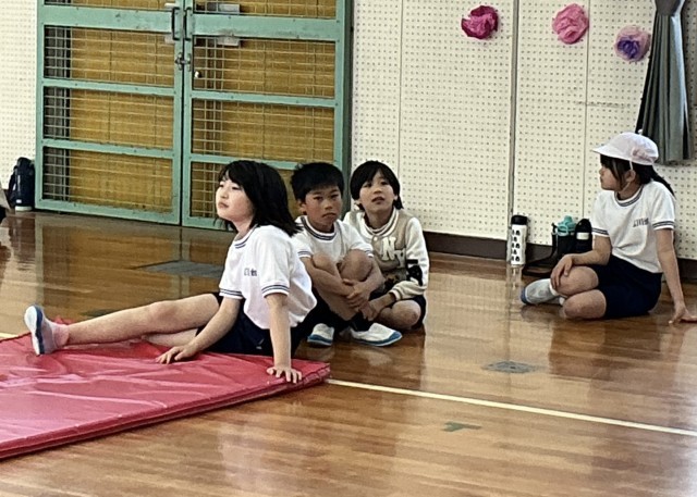 4年2組さん、体育の授業でマット運動をしたみたいです。
