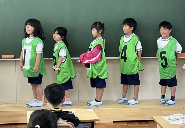 1年1組さん、算数の授業で「□□くんは前から〇番目?」「△△さんは後ろから〇番目?」「〇〇くんは左から何番目?」などの勉強をしました。