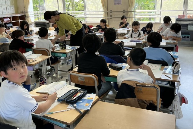 4年生の子たち、2クラスを3グループに分けて、算数の授業をしていました。