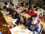 2時間目と3時間目に実施した書き初め大会。みんな一文字一文字に精神を集中させて書...