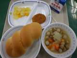 1月27日の給食は、ツイストパン、ポトフ、ミックスフルーツ、ミンチカツ、牛乳でし...