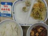 今日の給食は、ご飯、麻婆豆腐、かふう和え、野菜入りシュウマイ、牛乳でした。