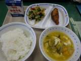 12月6日の給食は、豆腐の中華煮、ごはん、ナムル、ぎょうざ、牛乳でした。