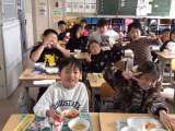 3年1組さんの給食の様子です。 今日はデザートでガトーショコラが出ました。 美味...