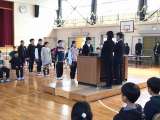 6か年皆勤・人権標語の表彰、校旗引継ぎ式