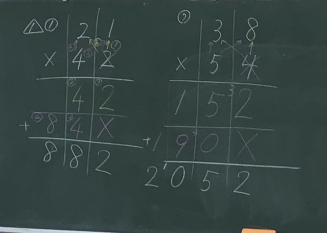 2桁×2桁の筆算を練習中でした。