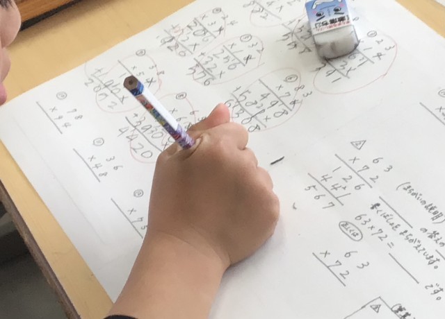 九九、繰り上げ、どこに数字を置くかなど、答えを導き出すまでに越えないといけないハードルがいくつもあります。
