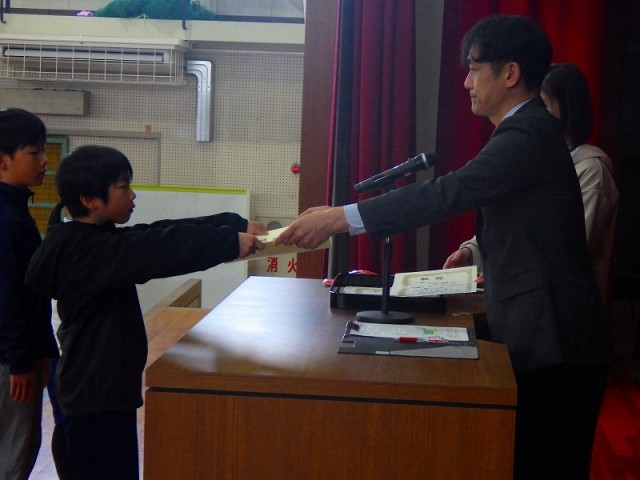 表彰を受けた子たち、さすがです。受け取る態度も、たいへん立派でした。