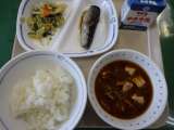 4月26日の給食は、ごはん、豆腐の中華煮、中華あえ、ぎょうざ、牛乳、乾燥小魚でし...