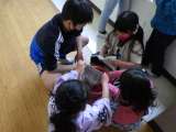 掃除の時間です。「こうやって折って、こうやってぎゅっとしぼるんだよ」6年生お兄さ...