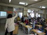 ALTのセバスチャン先生と楽しい外国語活動の時間です。担任の先生の元気な歌声に負...