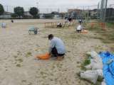 運動場の草取り