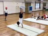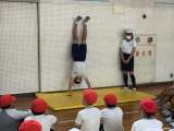 5年2組さんが体育の授業でマット運動をしていました。 今日は自分の演技をタ...