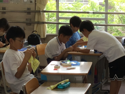 5年2組さんでは家庭科で裁縫の勉強をしていました。 自力で頑張る子、早くで...