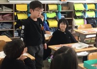 下校時に4年生の先生に、3年生の子が「今日はありがとうございました」とお礼を言...