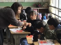 先生に見守られながら、6年生を送る会に向けてのリハーサルをする5年生のみんなで...