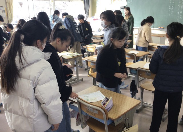 5年2組さん、それぞれが作った大造じいさんMAPを見合う授業をしていました。...