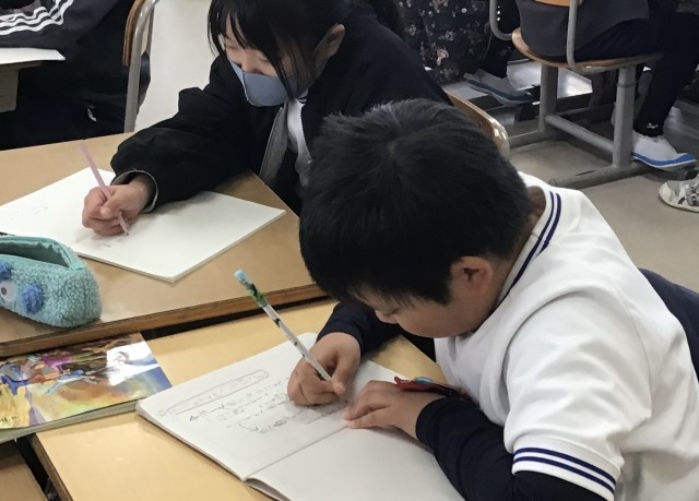 5年生、送る会に向けての準備を着々と進めています。