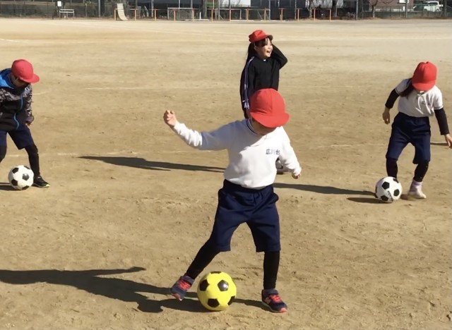 サッカーの上手ないつきくんが、お手本を何度もしてくれました。ボールを触りながら...