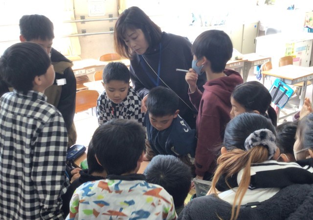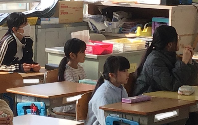 1年生の教室では、2時間目に行う通学団会の場所を先生と確認をしていました。普段...