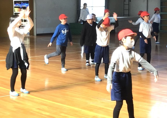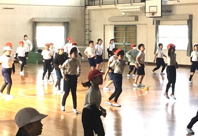 3年生のみんなが体育館で学年体育を行っていました。今日はダンスです。「EXダン...