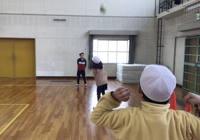 4年2組さん、ボールを使ってパスゲームの練習中でした。写真にうつっている「肩の...