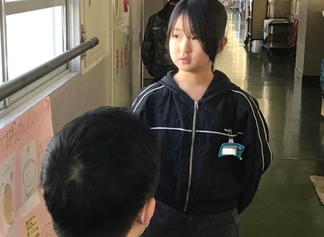 4年2組さん、廊下で英会話のテストを先生たちと行っていました。