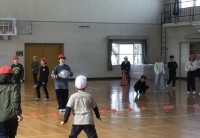 4年2組さん、柔らかいボールを使って、ドッジボールです。柔らかいと空気抵抗の関...