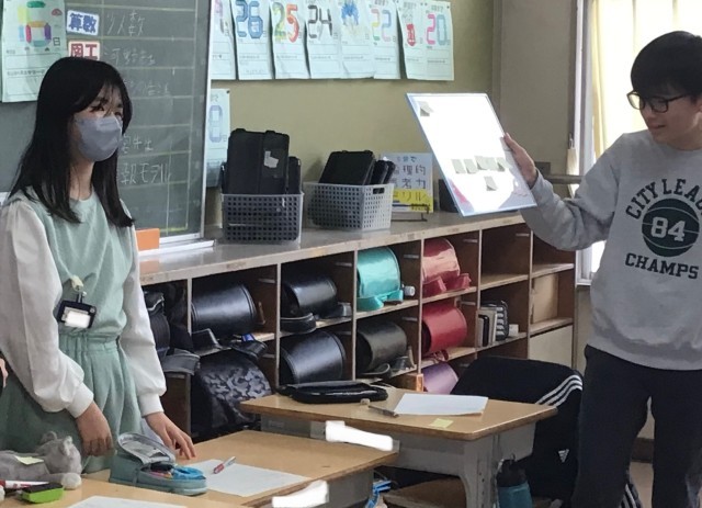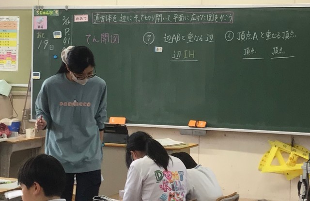4年生、6時間目は算数で「てんかい図」の勉強をしていました。担任の先生が入れ替...