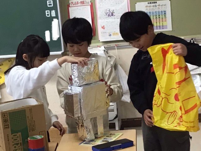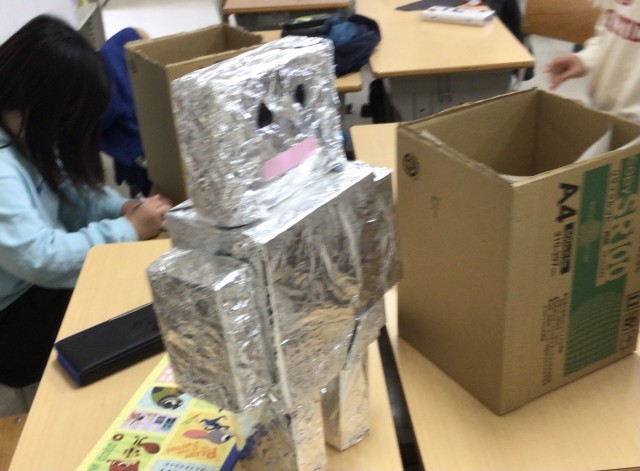 2年1組さんも同じく「自分はっけん」の取組です。1組さんは色画用紙を切っている...