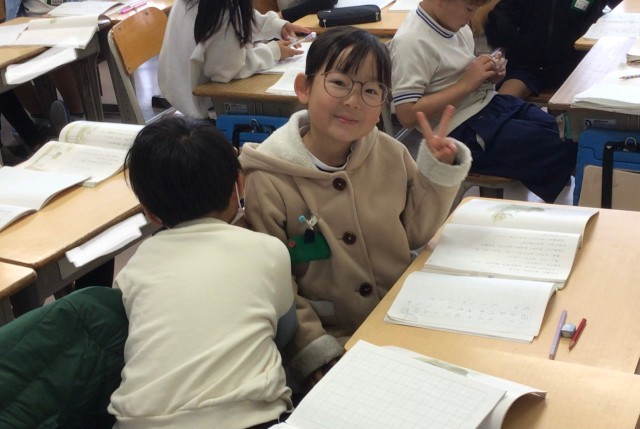 1年1組さん、書写の授業です。ずいぶん綺麗に書けるようになりました。みんな、成...