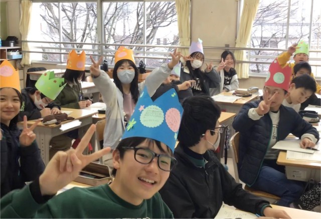 6年1組さん、1年生の子たちから「王冠」がプレゼントされました。嬉しすぎて授業...