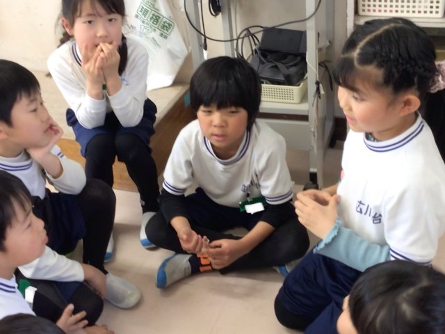 2年1組さん、なにやら4つのグループに分かれて、白熱した話し合いをしていました...